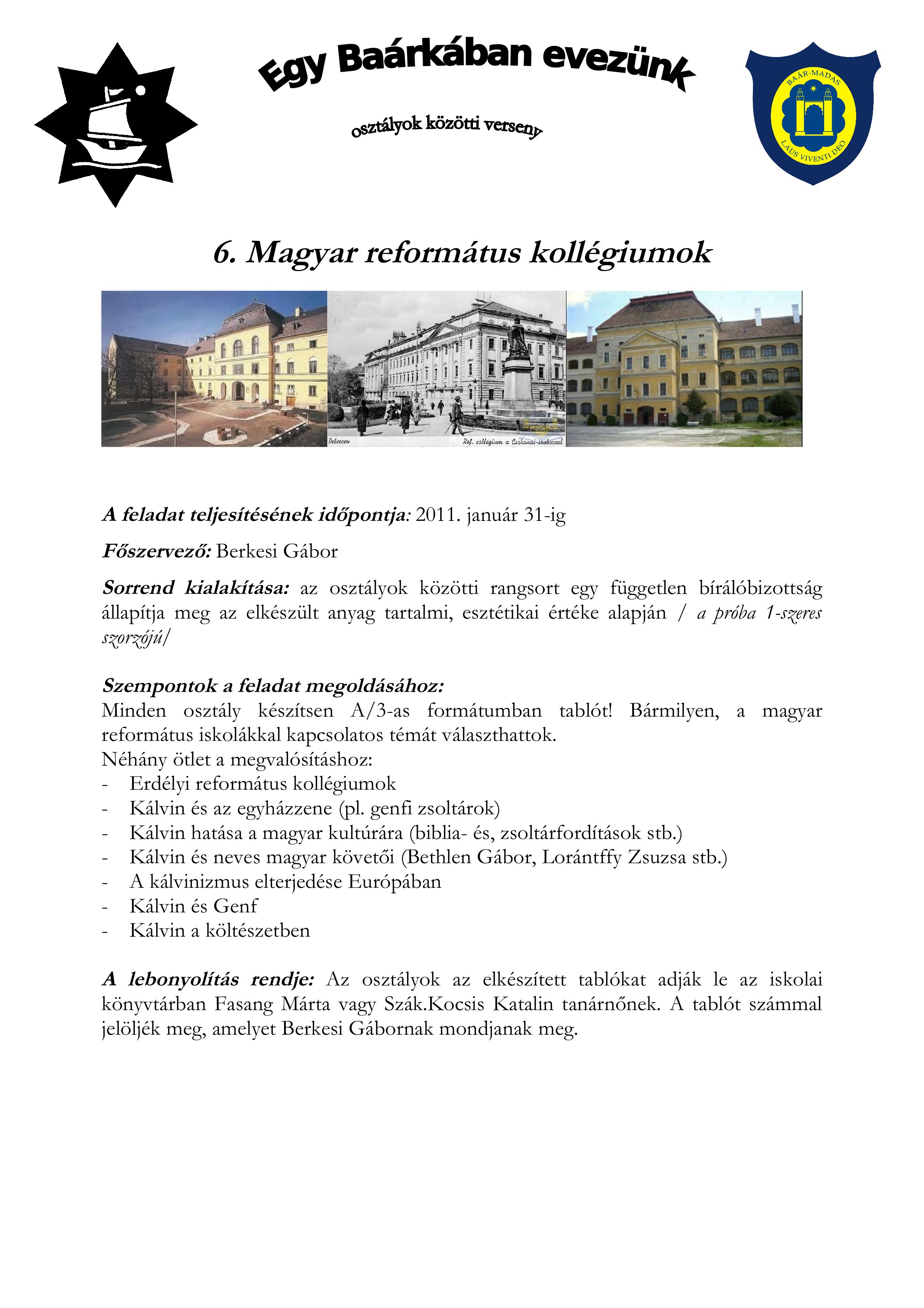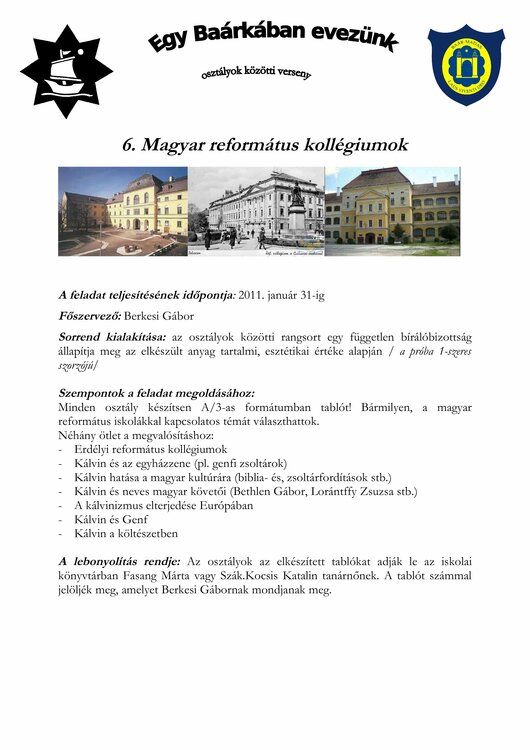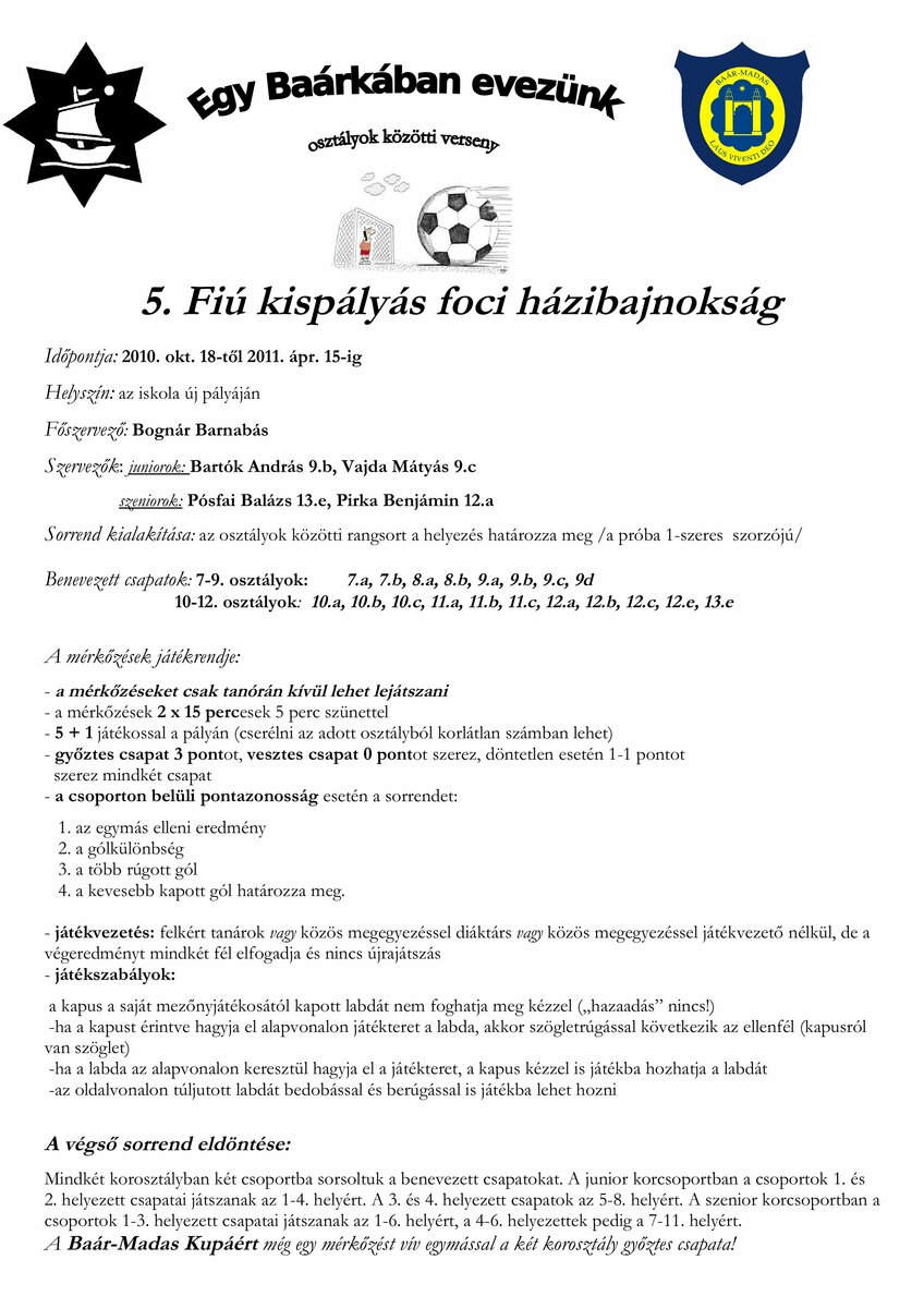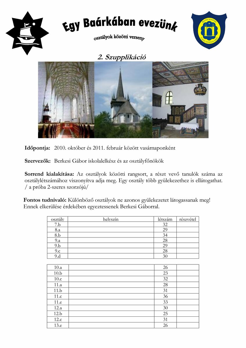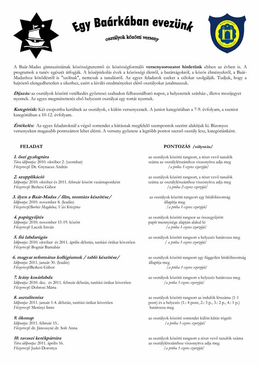 | őszi gyalogtúra | szupplikáció | ilyen a Baár–Madas… | papírgyűjtés | fiú labdarúgás | magyar református kollégiumok | leány kosárlabda | asztalitenisz | ökonap | tavaszi kerékpártúra | összesen | |
