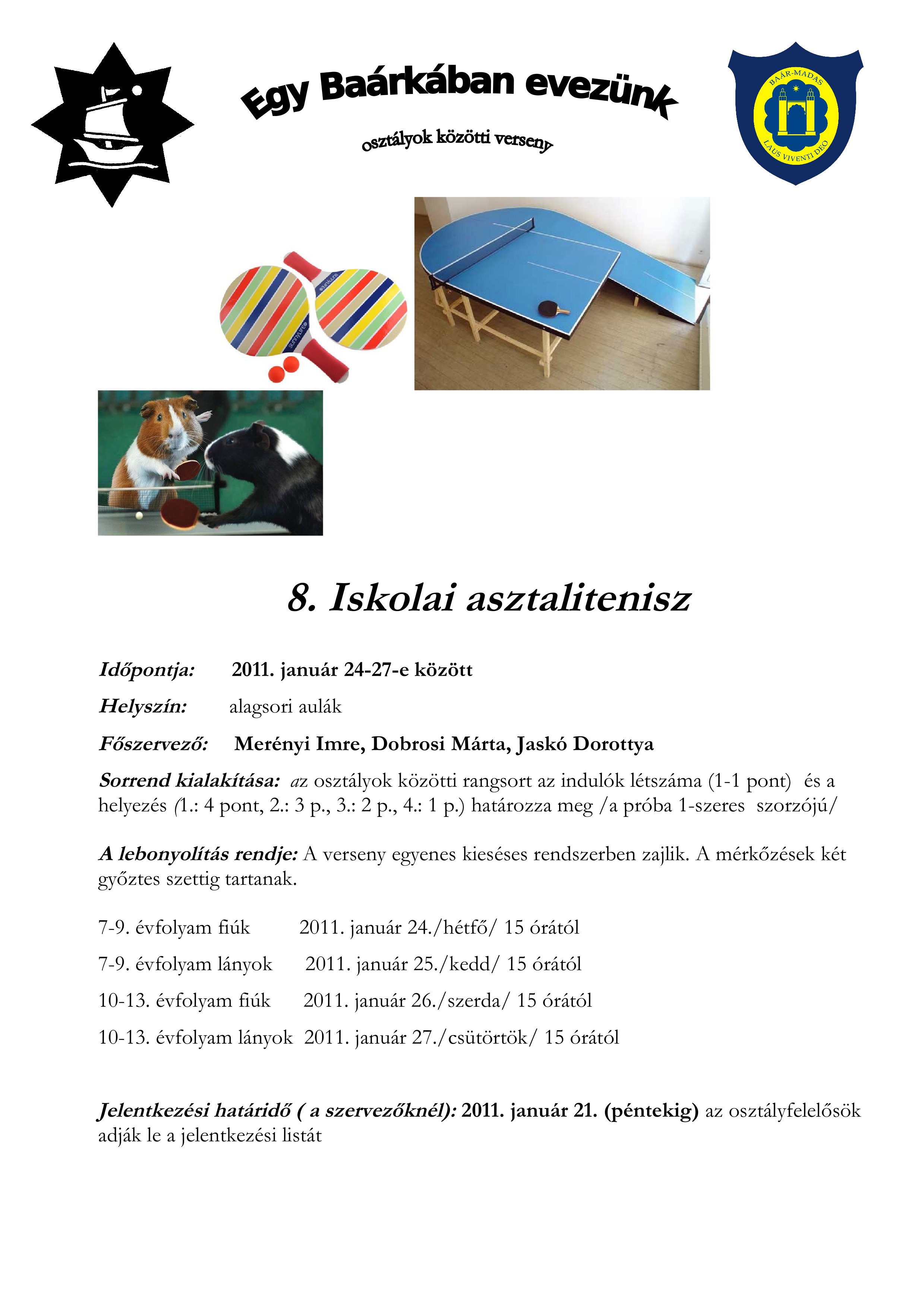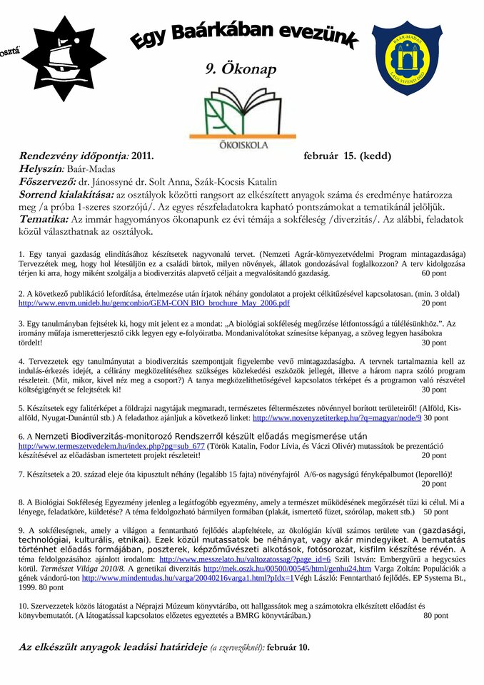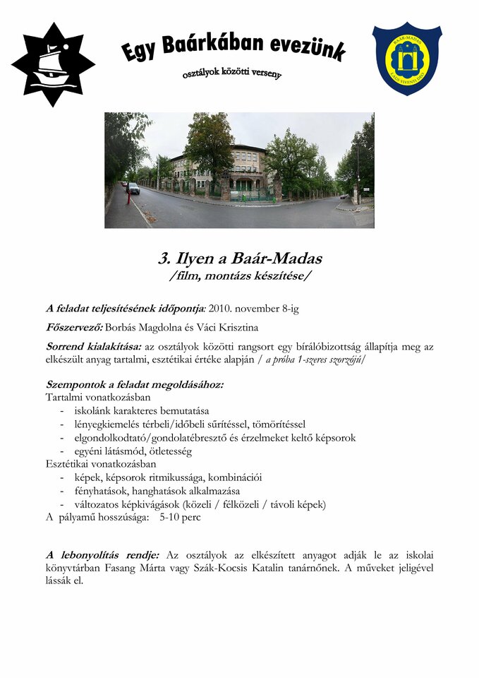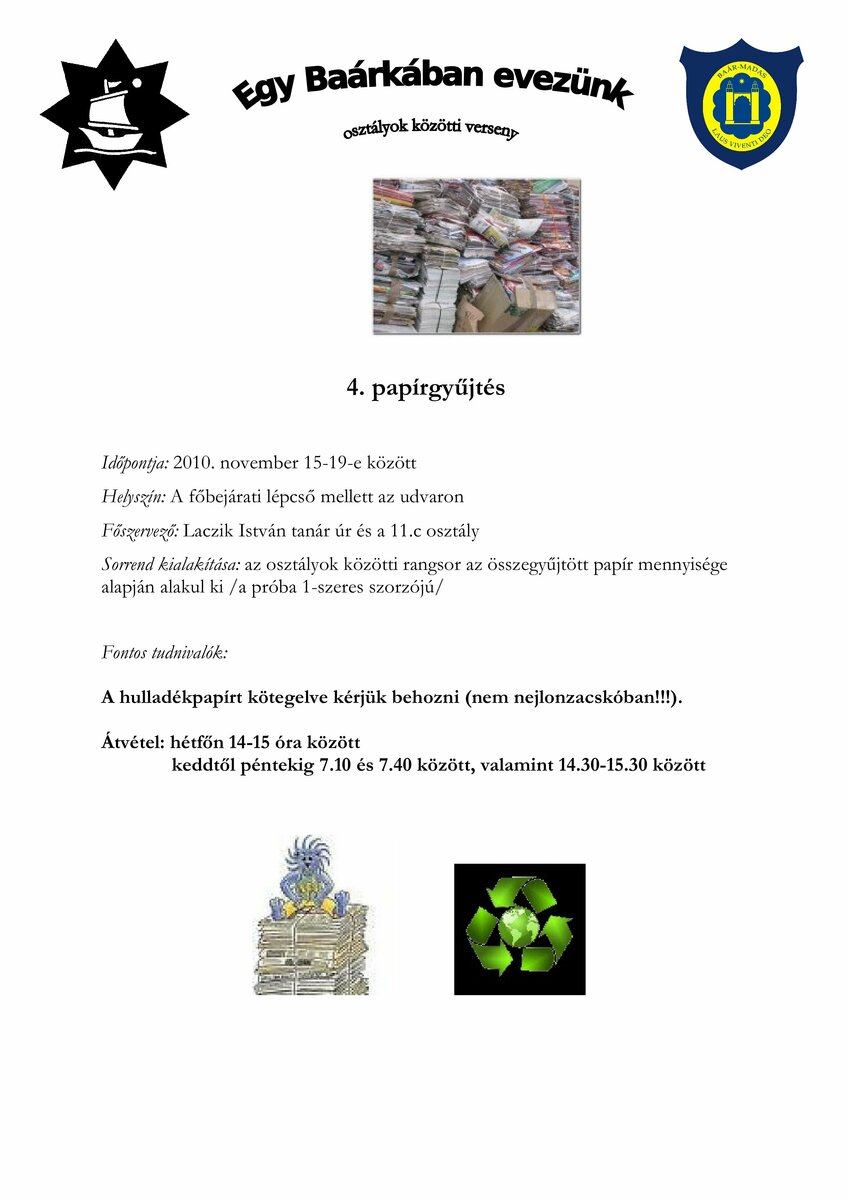 | őszi gyalogtúra | szupplikáció | ilyen a Baár–Madas… | papírgyűjtés | fiú labdarúgás | magyar református kollégiumok | leány kosárlabda | asztalitenisz | ökonap | tavaszi kerékpártúra | összesen | |